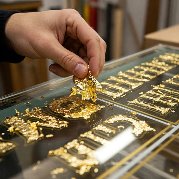 Luxurious gold leaf accents applied by hand for elegant signage and high-end visual statements.